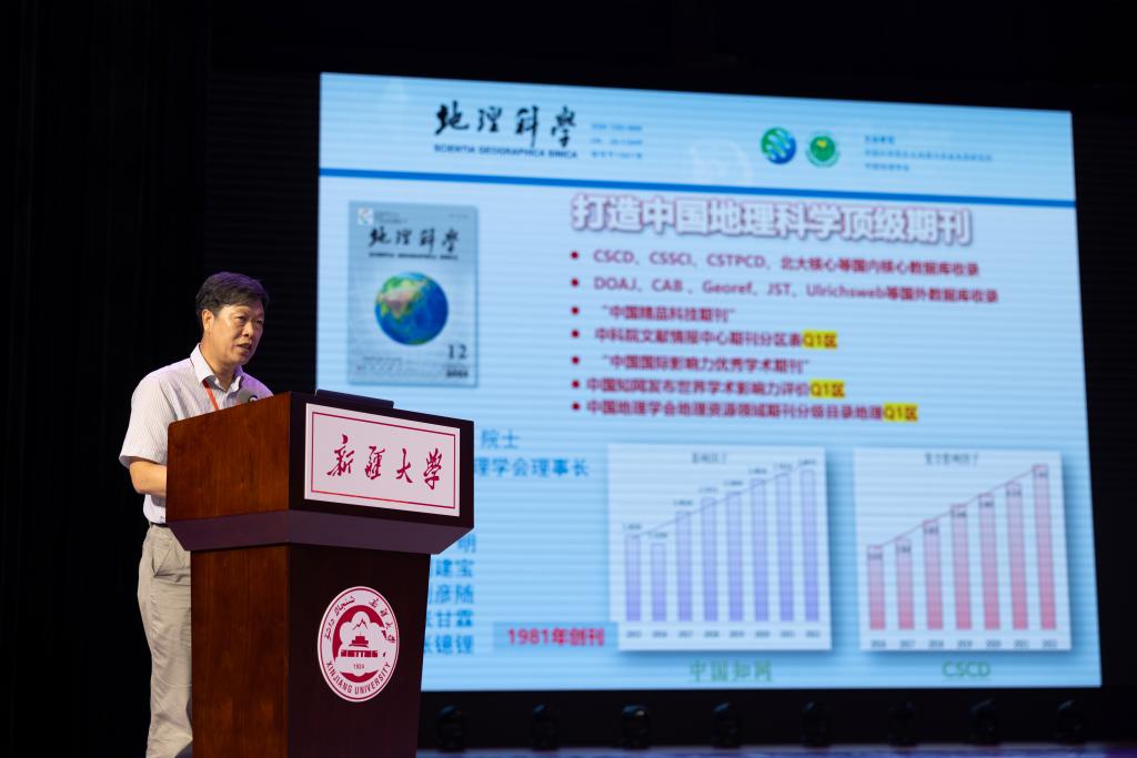中國地理學會理事長陳發虎院士在新疆大學百年華誕之際,對新疆大學地理工作者表達了祝福,他充分肯定了以中國科學院新疆生態與地理研究所和新疆大學為代表的新疆地理工作者們為地理學發展做出的突出貢獻,期望新疆地理學會發揮區位優勢,突出特色,爭創國際一流成果。