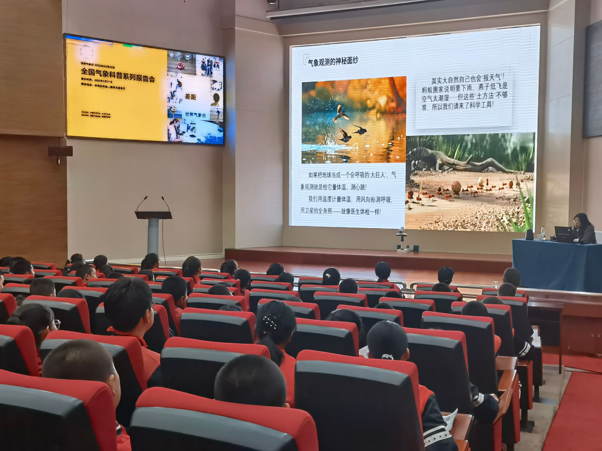 活動緊扣今年世界氣象日“攜手縮小早期預警差距”的主題,以科普互動講座、趣味實驗秀以及現(xiàn)代化氣象設(shè)備展示等形式為烏魯木齊市、奇臺縣等地4所學校的2500余名師生呈現(xiàn)了一場氣象科學“盛宴”。