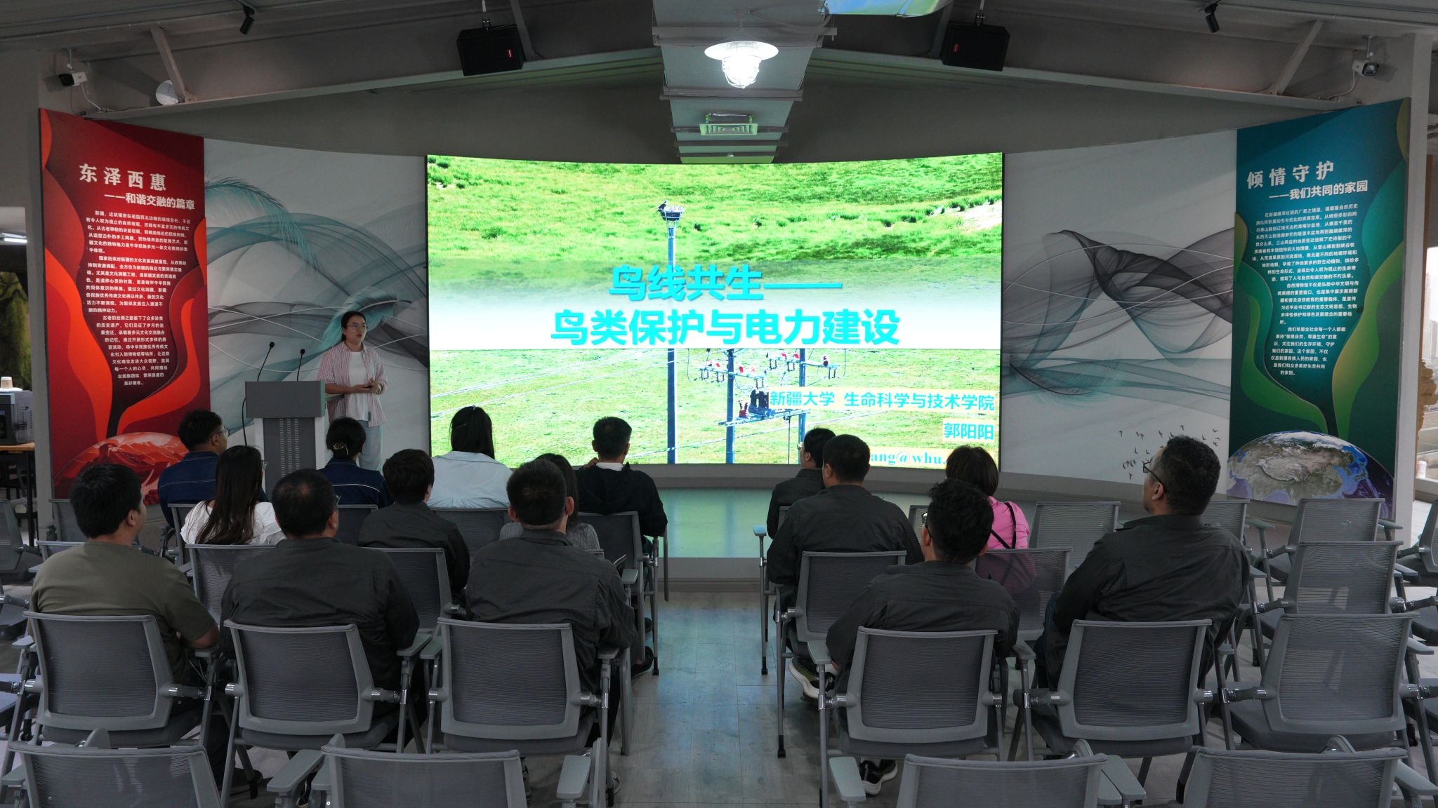 在專題分享環節,新疆野生動植物保護協會專家、新疆大學生命科學與技術學院教師郭陽陽作《鳥線共生——鳥類保護與電力建設》主題分享,介紹了多種珍稀鳥類的形態、習性、生存本領,以及在生態、經濟、科研和維護生物多樣性方面的作用意義。新疆電機工程學會會員單位國網烏魯木齊供電公司員工分享了近年來在輸電線路保護灰鶴等珍稀鳥類的方式舉措,與專家交流了候鳥生命線、生命鳥巢、綠電方舟建設過程中的實際問題。