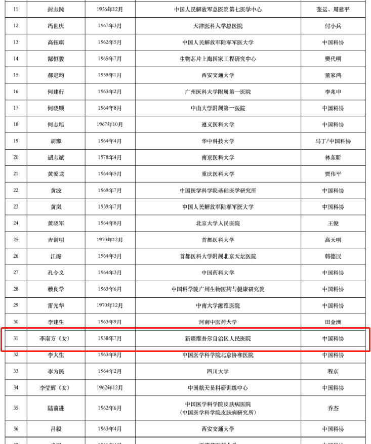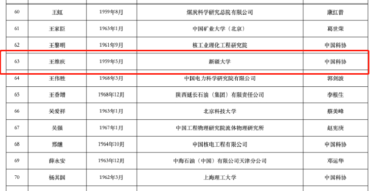 新疆共有6人入選,分別是:由葉嘉安院士推薦的陳曦,新疆科協(xié)推薦的潘世烈,入選2023年中國科學(xué)院院士增選有效候選人。新疆科協(xié)推薦的王維慶、陳亞寧、阿吉艾克拜爾·艾薩、李南方入選2023年中國工程院院士增選有效候選人。(以上排名不分先后)