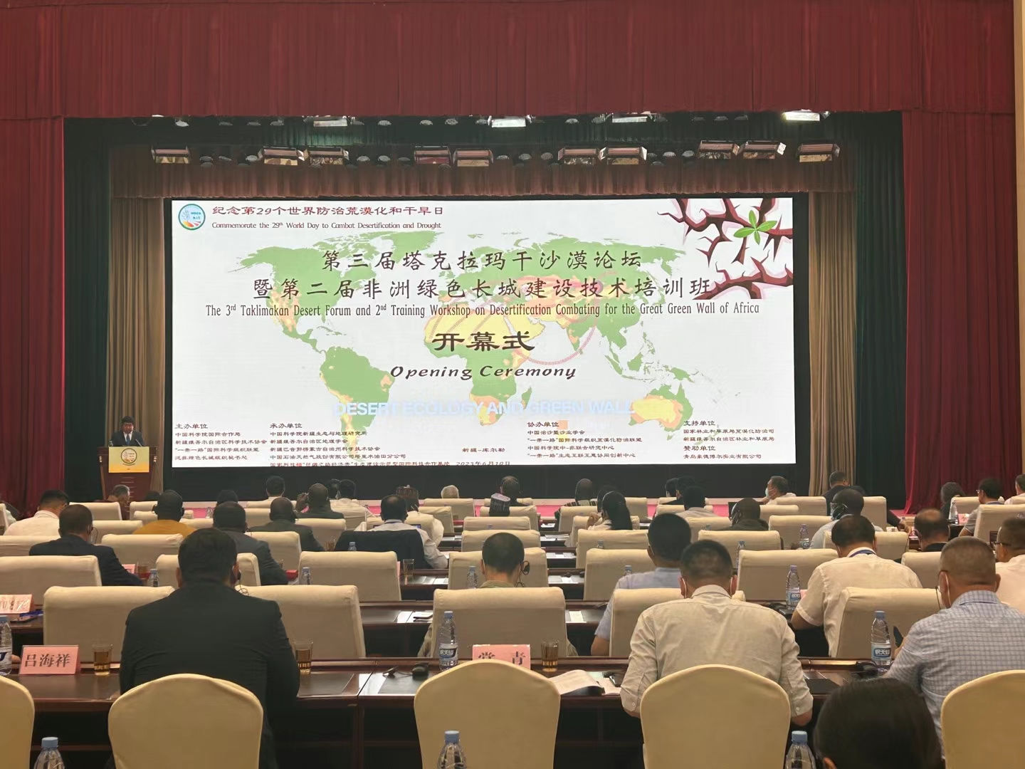 6月10日,第三屆塔克拉瑪干沙漠論壇暨非洲綠色長城建設技術培訓班在美麗的“梨城”庫爾勒市舉行。來自中國、埃塞俄比亞、毛里塔尼亞、尼日利亞、烏茲別克斯坦、哈薩克斯坦、沙特阿拉伯等14個國家的180余位荒漠化防治領域國內科研機構、國際組織和企業代表參加了本次論壇。開幕式由中國科學院新疆生態與地理研究所副所長吉力力·阿不都外力研究員主持。