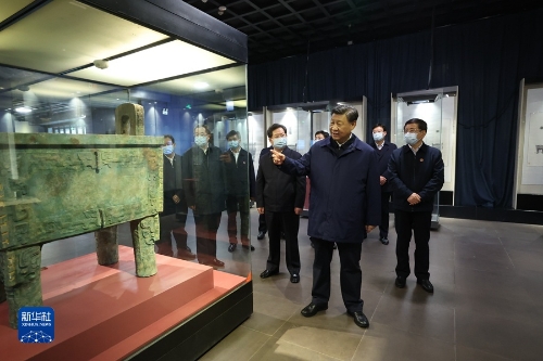 28日下午,習近平考察了位于安陽市西北郊洹河南北兩岸的殷墟遺址。殷墟是我國歷史上第一個文獻可考、為考古發掘所證實的商代晚期都城遺址。習近平步入殷墟博物館,仔細觀摩青銅器、玉器、甲骨文等出土文物。隨后,習近平來到車馬坑展廳,察看商代畜力車實物標本和道路遺跡。他指出,殷墟出土的甲骨文為我們保存3000年前的文字,把中國信史向上推進了約1000年。殷墟我向往已久,這次來是想更深地學習理解中華文明,古為今用,為更好建設中華民族現代文明提供借鑒。中國的漢文字非常了不起,中華民族的形成和發展離不開漢文字的維系。在這方面,考古事業居功至偉。考古工作要繼續重視和加強,繼續深化中華文明探源工程。中華文明源遠流長,從未中斷,塑造了我們偉大的民族,這個民族還會偉大下去的。要通過文物發掘、研究保護工作,更好地傳承優秀傳統文化。習近平強調,中華優秀傳統文化是我們黨創新理論的“根”,我們推進馬克思主義中國化時代化的根本途徑是“兩個結合”。我們要堅定文化自信,增強做中國人的自信心和自豪感。