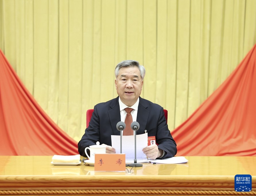 ??1月8日,中國共產黨第二十屆中央紀律檢查委員會第三次全體會議在北京開幕。中共中央政治局常委、中央紀律檢查委員會書記李希代表中央紀律檢查委員會常務委員會作題為《深入學習貫徹習近平總書記關于黨的自我革命的重要思想,縱深推進新征程紀檢監察工作高質量發展》的工作報告。新華社記者 龐興雷 攝