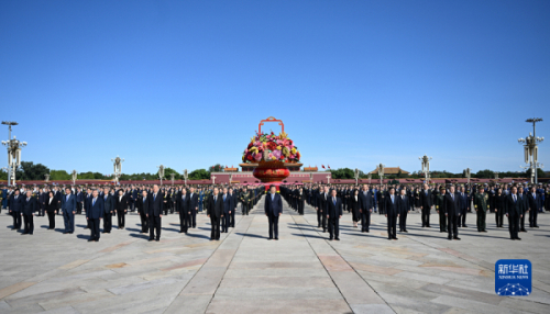 9月30日上午,黨和國(guó)家領(lǐng)導(dǎo)人習(xí)近平、李強(qiáng)、趙樂際、王滬寧、蔡奇、丁薛祥、李希、韓正等來到北京天安門廣場(chǎng),出席烈士紀(jì)念日向人民英雄敬獻(xiàn)花籃儀式。新華社記者 申宏 攝