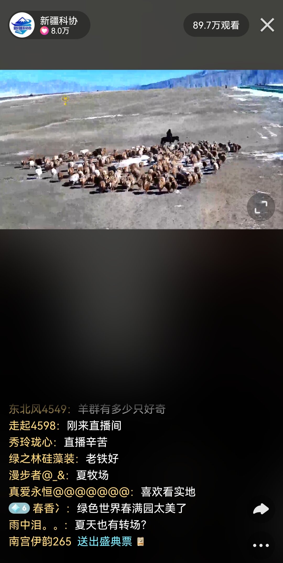 “屏幕前的觀眾大家好,這里是位于新疆伊犁州霍城縣2024年春季牲畜轉場果子溝老路口補給點指揮部的現場直播間,我是前方主播迪拉。今天,我將帶領各位觀眾領略新疆春季牛羊轉場,一同見證一場壯觀的自然遷徙,感受大自然與生命的奇妙連接......”3月16日,由新疆科協聯合快手獨家策劃的“神奇動物春游記——春季轉場”直播活動拉開帷幕。