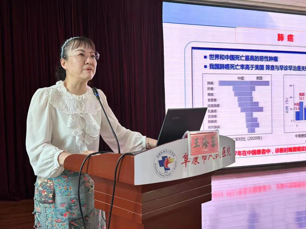 醫(yī)療專家山西省腫瘤醫(yī)院住院部副主任王海蓉,曾赴日本、新加坡研修,是中國抗癌協(xié)會腫瘤姑息與營養(yǎng)專委會委員、碩士生導師,山西省“最美科技工作者”獲得者。在昌援助期間,王海蓉主任通過線上線下相結(jié)合的方式,視頻連線縣市衛(wèi)生系統(tǒng),為全州醫(yī)務(wù)人員開展《腫瘤早期篩查的策略》專題科普講座,從腫瘤監(jiān)測、癌癥篩查、健康教育、規(guī)范診療、安寧護理等方面與醫(yī)務(wù)人員進行深入交流,講座對基層醫(yī)務(wù)人員掌握癌癥早篩早查早診技能,提升本領(lǐng)大有裨益,在醫(yī)護人員中引起強烈反響,受益醫(yī)護人員1200余人。