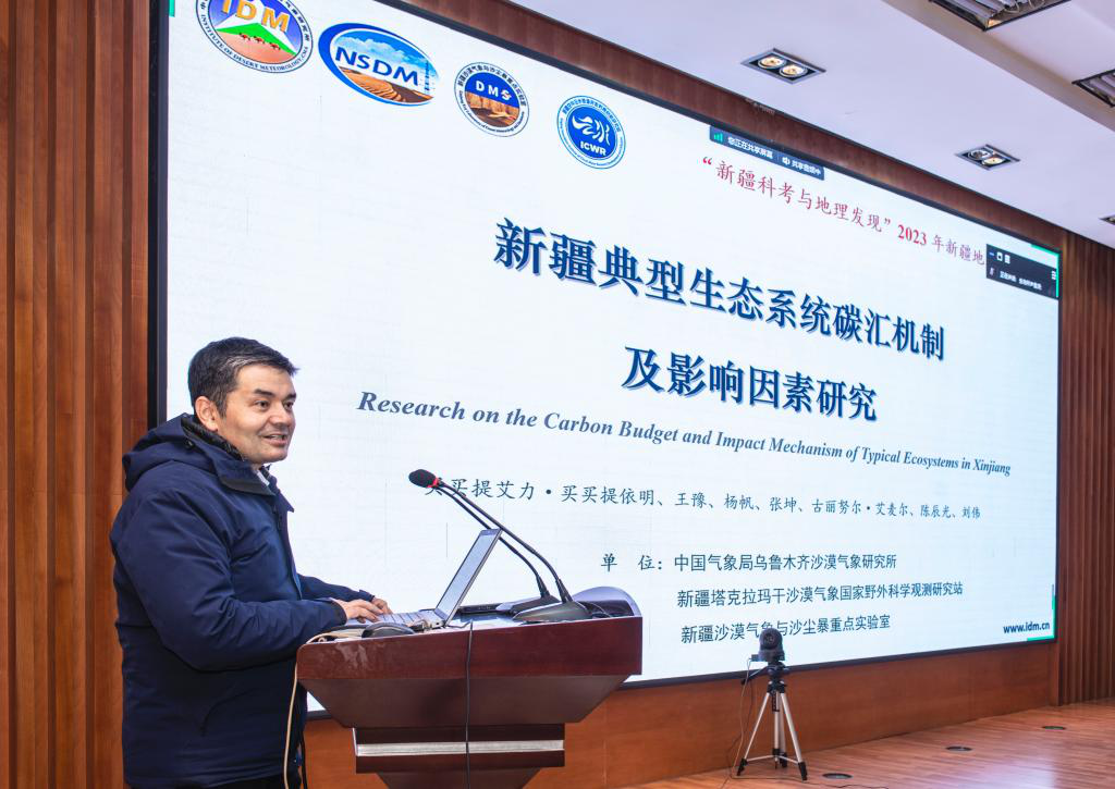 12月20日,新疆地理學(xué)會(huì)2023年學(xué)術(shù)年會(huì)在中國科學(xué)院新疆生態(tài)與地理研究所召開。自治區(qū)科協(xié)黨組成員、副主席葉爾波力·沙比尤拉,中科院新疆生態(tài)與地理研究所黨委書記張向軍出席開幕式并講話。中國科學(xué)院新疆生地所黨委副書記、紀(jì)委書記、新疆地理學(xué)會(huì)副理事長吉力力·阿不都外力研究員主持開幕式。