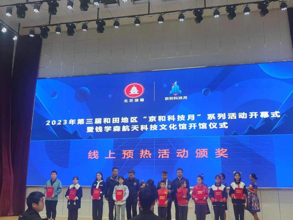 2023年10月15日,令人翹首以盼許久的第三屆“京和科技月”系列活動開幕式暨錢學森航天科技文化館開館儀式在和田市第五中學舉行,北京市援疆和田指揮部、和田地區教育局、和田地區科協主要領導人出席,來自全地區各縣市中小學的300余名師生代表近距離感受科技的魅力。