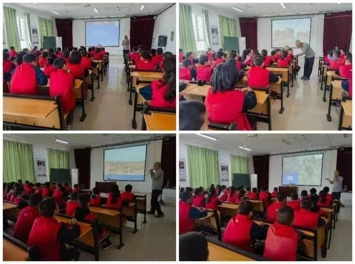 北京動物園科普館首任館長、中國老科學科普講師團成員肖方老師走進若羌縣城西新區學校,為孩子講述《大自然千奇百怪的動物世界》。肖老師從老虎說到牛,從沙漠里的蝸牛講到非洲的河馬,告訴大家大自然哺育了萬千生靈,與人類共享同一片藍天,提醒同學們珍惜美麗家園、守護綠水青山,同學們與肖老師積極互動,學習氛圍熱烈。
