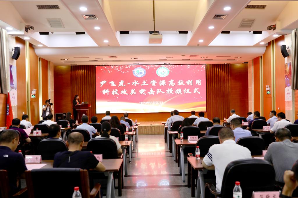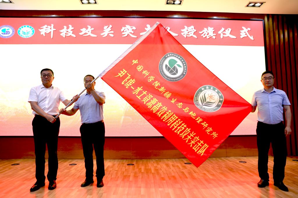 8月27日,中國(guó)科學(xué)院新疆生態(tài)與地理研究所舉行“尹飛虎水土資源高效利用科技攻關(guān)突擊隊(duì)”授旗儀式。中國(guó)科學(xué)院新疆分院院長(zhǎng)、中國(guó)科學(xué)院院士肖文交出席授旗儀式,新疆科協(xié)、科技廳、人力資源和社會(huì)保障廳、新疆生產(chǎn)建設(shè)兵團(tuán)科技局(科協(xié))、烏魯木齊市科技局、中國(guó)科學(xué)院新疆分院的相關(guān)領(lǐng)導(dǎo)和嘉賓,新疆農(nóng)墾科學(xué)院、石河子大學(xué)、塔里木大學(xué)、中國(guó)科學(xué)院新疆生態(tài)與地理研究所共同組成的突擊隊(duì)員參加授旗儀式。