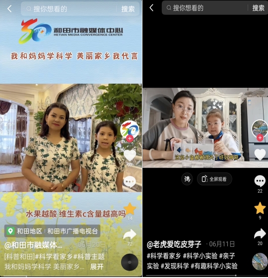 在今年“我和媽媽學科學”活動中,和田市第一小學五(3)班學生邁爾丹江與母親一起拍攝發布的科普視頻《國家非物質文化遺產桑皮紙的制作過程》、和布克賽爾蒙古自治縣查和特鄉學校五(2)班學生巴麗江與母親一起拍攝發布的科普視頻《瑪納斯鹽湖》入選7月全國十佳視頻。自治區科協《依托各類科普陣地,帶動群眾科學素質提升》、中國科學院吐魯番沙漠植物園《探尋荒漠植物生存智慧,弘揚科學家精神》及塔城地區烏蘇市第四中學《結合地方特色,以“網”傳播科學》三個案例入選全國2023年“智愛媽媽”親子教育科普典型案例。