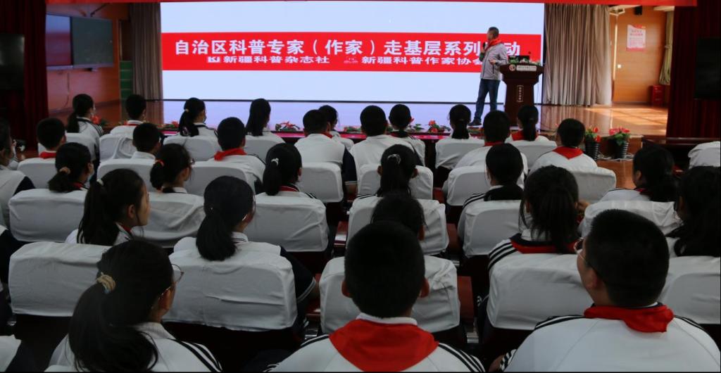為進(jìn)一步拓寬中小學(xué)生科學(xué)視野、點(diǎn)燃探索科學(xué)的熱情,結(jié)合2023年主題教育學(xué)習(xí)及“為民辦實(shí)事”活動(dòng)要求,5月19日下午,新疆科普雜志社和新疆科普作家協(xié)會(huì)聯(lián)合舉辦了“科普作家進(jìn)校園”活動(dòng)。本次活動(dòng)邀請(qǐng)到了北京工業(yè)大學(xué)軟件工程碩士、中國(guó)科普作協(xié)會(huì)員、中國(guó)兒童文學(xué)研究會(huì)會(huì)員,新疆科普作家協(xié)會(huì)理事--葛勇老師為烏魯木齊市第五十中學(xué)的孩子們帶來了一場(chǎng)關(guān)于新疆地質(zhì)地貌物產(chǎn)科普的“知識(shí)盛宴”。