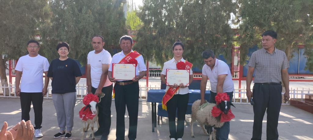 與以往的表彰形式不同,本次表彰活動“洋氣十足”。只見優(yōu)秀黨員身披綬帶、胸戴紅花,身旁則是本次表彰的獎品——頭頂大紅花的多胎綿羊。優(yōu)秀黨員麥提圖爾蓀·托合提手拿榮譽(yù)證書,“喜氣洋洋”地看著身旁的“獎品”,高興地合不攏嘴:“這次獎勵,專門征求了我們的意見,結(jié)合我們的需要發(fā)放多胎羊,我很高興。今后我一定努力帶動身邊更多黨員、村民參與到村里各項(xiàng)工作和活動中,特別是努力推動發(fā)展產(chǎn)業(yè)經(jīng)濟(jì),共同把我們繁榮村建設(shè)成美麗鄉(xiāng)村。”農(nóng)牧民群眾看到這次別開生面的表彰,表示很受鼓舞,“這樣的表彰很生動,今后我也要向麥提圖爾蓀大哥學(xué)習(xí),積極申請入黨,向黨組織靠攏,做身邊人的榜樣,希望將來也能獲得優(yōu)秀黨員的榮譽(yù)。”村民圖迪罕·奧斯曼十分認(rèn)真地說到。