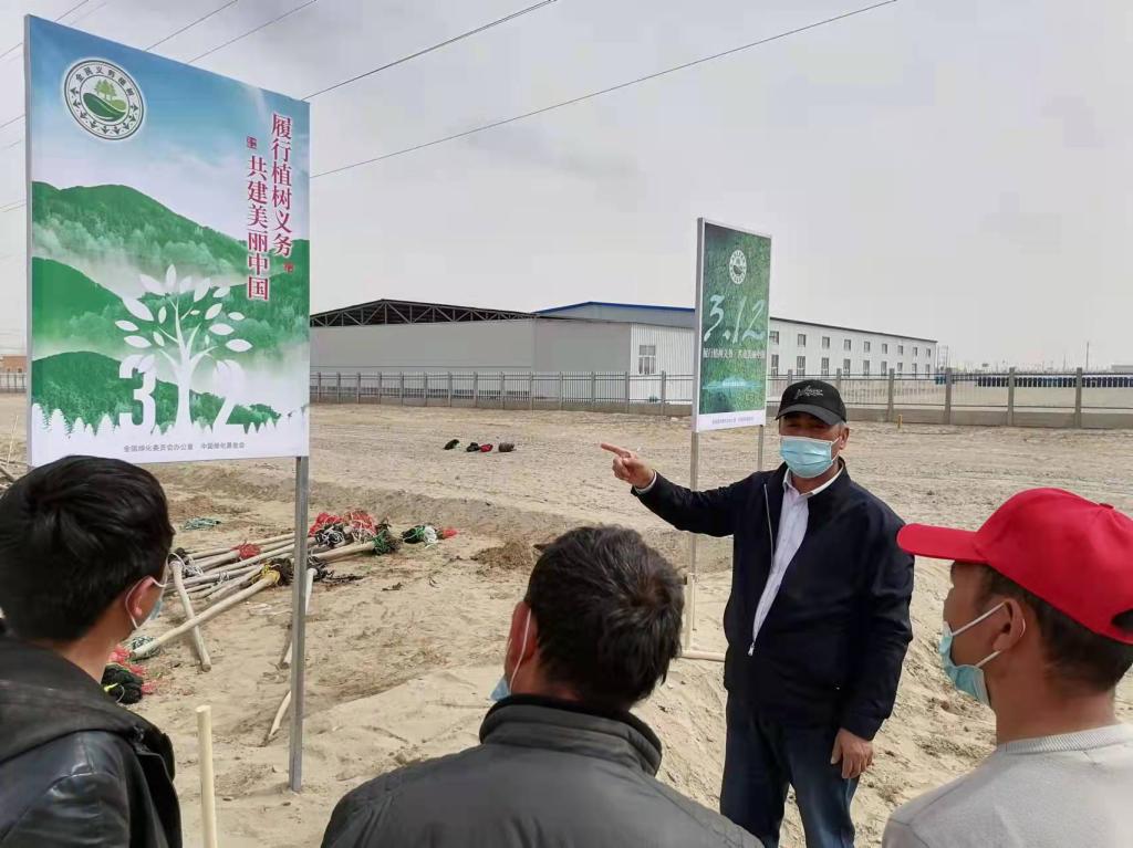 活動現場,新疆林學會秘書長安尼瓦爾·阿木提同志帶領學會工作人員,與當地干部群眾共同栽植下一株株健碩的樹苗,培土澆水,對樹干涂白。連片的幼樹如列兵般筆直工整,抵御干旱風沙的侵襲,守護著當地的生態環境。