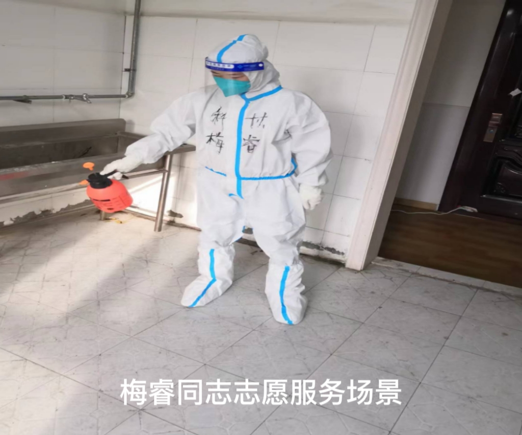 梅睿作為一名黨員志愿者在疫情防控的前沿陣地——“隔離點(diǎn)”日復(fù)一日的默默奉獻(xiàn)。隔離點(diǎn)每日的工作就是從打掃教學(xué)樓內(nèi)各樓層過(guò)道的紅地毯開(kāi)始,從上至下,一層接著一層,掃拖一遍,消殺一遍,再把所有樓道、臺(tái)階、扶手都清潔一遍,完工以至午時(shí)。梅睿回憶道,11月12日一大早,有人在市長(zhǎng)熱線投訴反映,進(jìn)入隔離點(diǎn)已有十余天,但每日核酸均為異常,想要申請(qǐng)居家隔離。接到反饋情況后,梅睿向他耐心解釋核酸異常原因、解除隔離條件、報(bào)送名單流程和解除隔離的注意事宜,該人員知曉后表示理解和感謝。