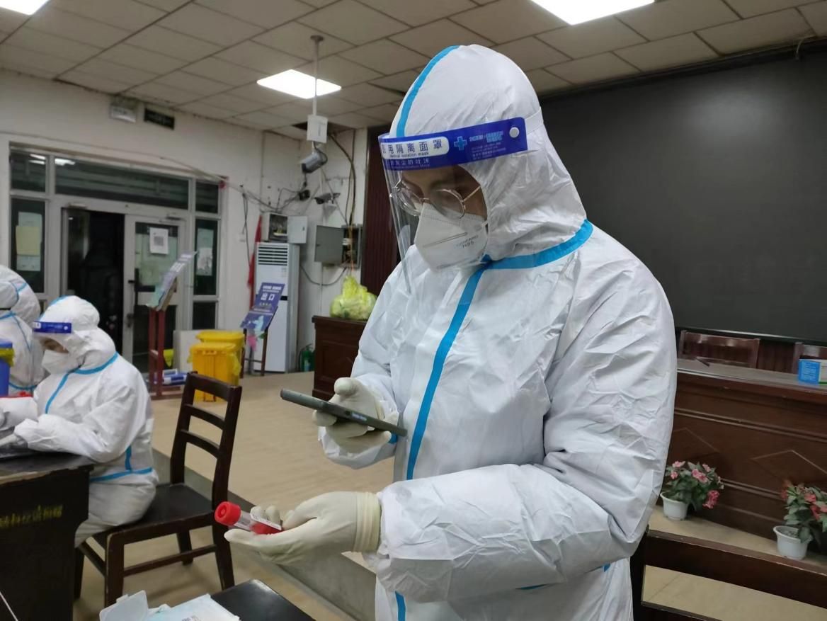 “請大家排好隊,保持一米線的距離,戴好口罩,提前準備好二維碼。采樣完的群眾請盡快離開,不要聚集……”每天早上7點30分,駐村工作隊所有隊員們準時到達各自網格的核酸檢測點,穿上藍色防護服裝備,同醫護人員一同參與登記掃碼、核酸檢測、樣本轉運等工作。針對行動不便的老年人、殘疾人等特殊人群,隊員們提供上門采樣服務,確保核酸檢測“應檢盡檢,不漏一人”。