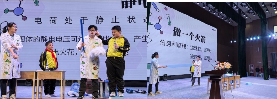 首屆科技節(jié)在無人機(jī)編隊(duì)飛行表演中拉開帷幕,新疆科技館相關(guān)負(fù)責(zé)人與在場的領(lǐng)導(dǎo)和嘉賓共同宣布科學(xué)實(shí)驗(yàn)區(qū)暨科技節(jié)啟動(dòng)。活動(dòng)中,最亮眼的還屬新疆科技館科技輔導(dǎo)員在現(xiàn)場進(jìn)行的科學(xué)實(shí)驗(yàn)秀。實(shí)驗(yàn)秀以“玩轉(zhuǎn)小實(shí)驗(yàn)、探索大科學(xué)”為主題,“靜電禮花、靜電千人陣”實(shí)驗(yàn),讓同學(xué)們知道了靜電的巨大威力與危害;“做一個(gè)火箭”實(shí)驗(yàn),教會(huì)同學(xué)們伯努利原理,流速快、壓強(qiáng)小,流速慢、壓強(qiáng)大;“燃?xì)忾W爆、熱氣球升空、液氮云”等一個(gè)個(gè)科學(xué)小實(shí)驗(yàn),將現(xiàn)場的互動(dòng)氣氛推向高潮,同學(xué)們爭先恐后地參與其中。新疆科技館科技輔導(dǎo)員高煒說:“進(jìn)校園表演科學(xué)實(shí)驗(yàn),我們會(huì)更注重用現(xiàn)象比較明顯的實(shí)驗(yàn),給全校師生帶來啟發(fā),注重科學(xué)思維的引導(dǎo),所有的實(shí)驗(yàn)都是為了啟發(fā)學(xué)生,讓學(xué)生看得見,摸得著,感受得到科學(xué)知識(shí)就在我們身邊。”