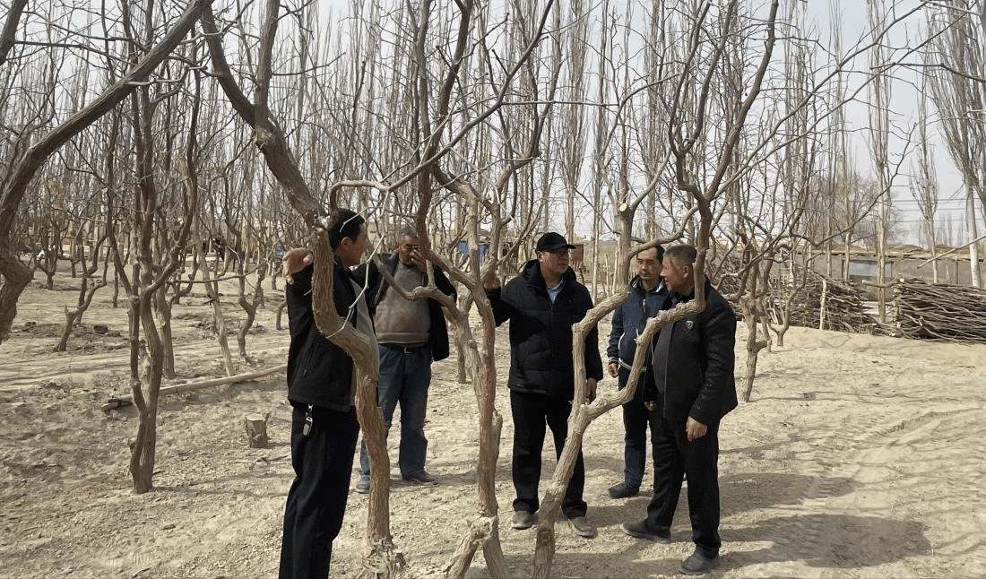 在塔爾庫木村紅棗地里村民們忙著紅棗剪枝,他們根據紅棗樹的生長情況采取不同修剪方法,以確保紅棗高產量和高品質。紅棗種植能手庫爾班·阿卜杜喀迪爾同樣在紅棗地里有序地忙碌著,他說:“春季是紅棗樹剪枝管理的重要時間節點,最近,我每天都在地里按照專家和村里的指導修剪枝條,這樣才能更好地提高我家紅棗的產量和品質。”