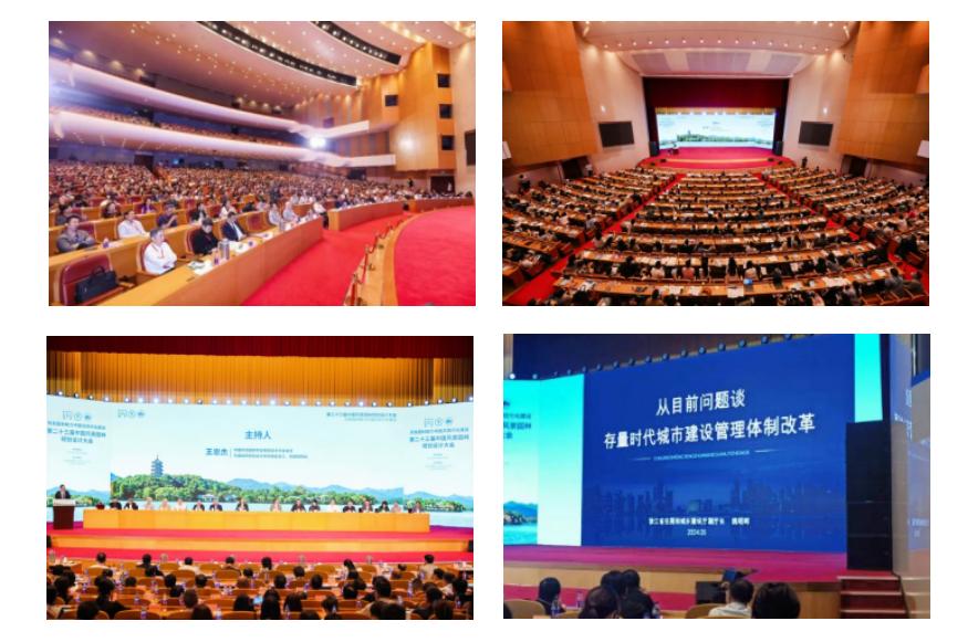 住房和城鄉建設部總經濟師楊保軍,中國風景園林學會理事長李如生,原中共浙江省委常委、杭州市委書記、杭州城市學研究理事會理事長王國平,自然資源部國土空間規劃局副局長苗澤,浙江省住房和城鄉建設廳副廳長姚昭暉,杭州市政府副市長陳衛強,山東省住房和城鄉建設廳二級巡視員楊建武,住房城鄉建設部城建司園林處副處長湯飛,中國工程院院士程泰寧,中國工程院院士吳志強,全國工程勘察設計大師何昉,全國工程勘察設計大師朱祥明,全國工程勘察設計大師李存東,北京林業大學副校長李雄,清華大學國家公園研究院院長楊銳,杭州市園林文物局局長高小輝,中國風景園林學會副理事長金荷仙,同濟大學教授章明、規劃設計分會王忠杰會長等領導和專家蒞臨會議講話并做主旨報告。
