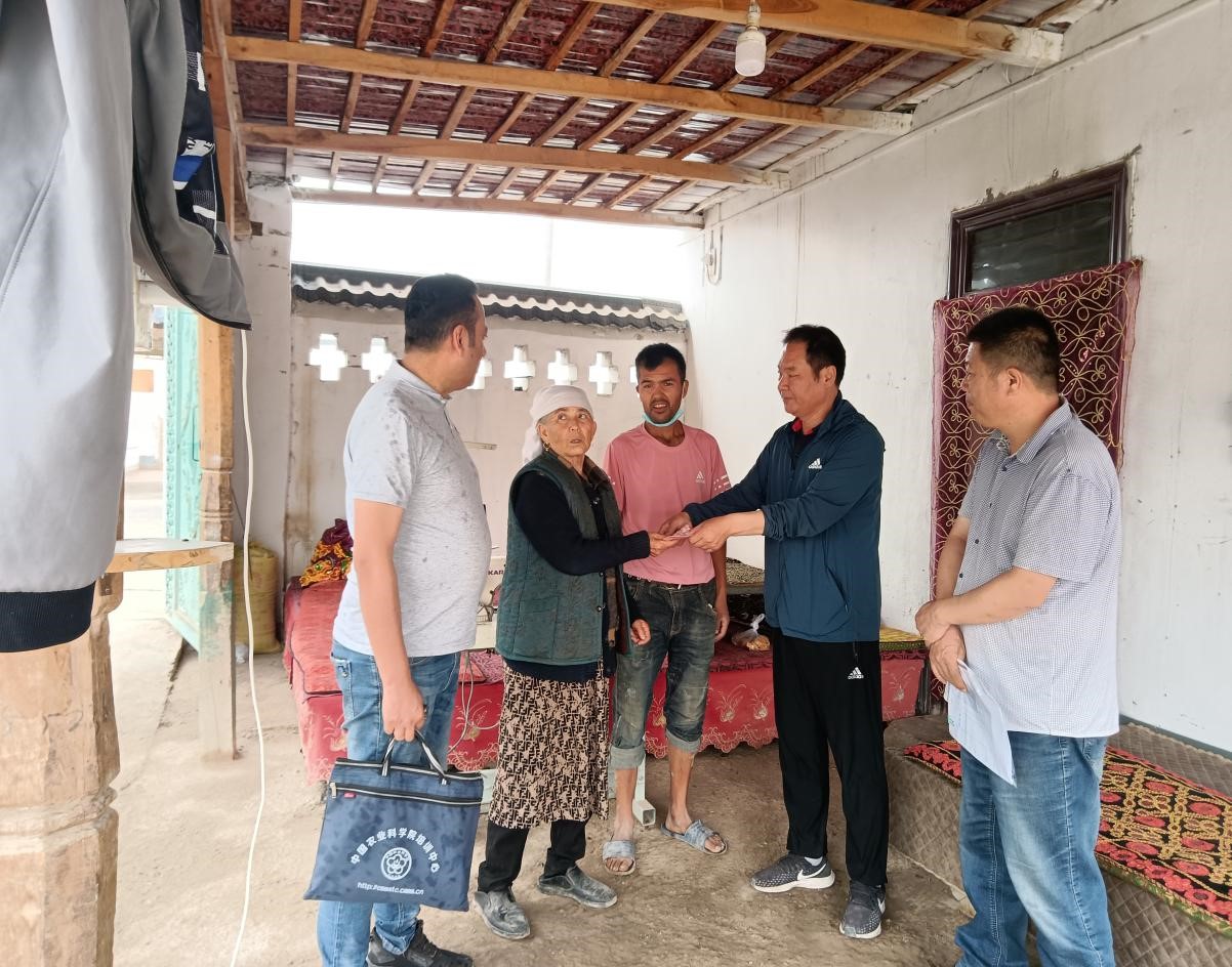 6月24日,新疆畜牧獸醫學會會員、新疆畜牧科學院駐色力布亞鎮拜什吐普(15)村工作隊隊長第一書記劉應進帶領“訪惠聚”工作隊員開展老黨員和貧困黨員走訪慰問活動。在這“七一”建黨節前夕,為老黨員和生活貧困的黨員送上了節日的問候,帶來了大米、面粉、食用油等生活用品,讓老黨員和困難黨員在生活上得到了幫扶、精神上得到了安慰,切身體會到了黨組織的關懷和溫暖,也拉近了駐村工作隊和村黨員的距離。
