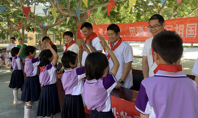 “今天,我們歌頌人民英雄的榮光,見證如他們所愿的夢想!今天,我們對黨許下青春的誓言……”,隨著駐村工作隊(duì)隊(duì)長、第一書記肖麗帶領(lǐng)大家高聲朗誦《請黨放心、強(qiáng)國有我》,孩子們端坐肅立、目光堅(jiān)定、聲音鏗鏘有力的跟讀著,“請黨放心,強(qiáng)國有我!請黨放心,強(qiáng)國有我!……”。這是詩詞,也是誓言,嘹亮的聲音在校園久久回蕩。
