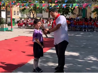 清晨,金色的陽光灑滿校園,孩子們佩戴著鮮艷的紅領(lǐng)巾,身著多采的節(jié)日禮服,整齊地站在操場上。在嘹亮的國歌聲中,孩子們肅立致敬,表達(dá)著對祖國的無限熱愛。活動(dòng)開始,學(xué)校領(lǐng)導(dǎo)發(fā)表了簡短而有力的講話,強(qiáng)調(diào)了"六一"兒童節(jié)的意義,并鼓勵(lì)孩子們要珍惜時(shí)光,努力學(xué)習(xí),將來成為國家的棟梁之材。隨后,孩子們手捧鮮艷的紅領(lǐng)巾,走向參加活動(dòng)的學(xué)會(huì)領(lǐng)導(dǎo)、駐村工作隊(duì)和村兩委成員,親手為大家佩戴上紅領(lǐng)巾,并向他們敬上少先隊(duì)隊(duì)禮,表達(dá)了學(xué)生們對來賓的尊敬,傳承弘揚(yáng)著少先隊(duì)紅色精神。