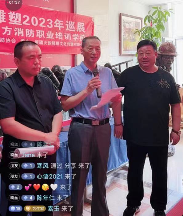 新疆火韻精雕文化傳媒有限公司董事長張運介紹了火韻文創(chuàng)消防雕塑2023巡展情況和精美雕塑創(chuàng)作歷程,向大家展示了具有消防滅火救援場景和指戰(zhàn)員光輝形象等消防元素的精雕文化作品,并表示將發(fā)揮一名消防老兵余熱,為新時代新疆消防科普事業(yè)做出更大貢獻(xiàn)。新疆清大東方消防職業(yè)培訓(xùn)學(xué)校校長張浩作為在部隊長期與張運共事的戰(zhàn)友,介紹了多年來張運堅持利用在美術(shù)、攝影、精雕等方面的特長創(chuàng)作消防文化作品的歷程。