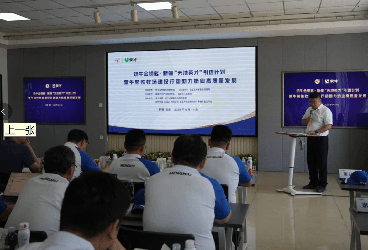 近日,由國家奶牛產業技術體系、中國科協農技協奶牛專委會、奶牛金鑰匙技術服務聯盟聯合蒙牛集團、新疆奶業協會、新疆昌吉市人民政府、新疆畜牧科學院畜牧業質量標準研究所等多家單位聯合舉辦的“創奶業新質生產力?助力鄉村振興”奶牛金鑰匙專題技術培訓活動在蒙牛新疆天雪工廠會議室順利舉行。