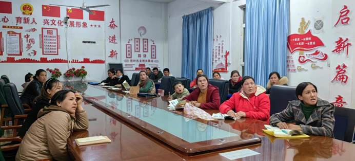 為進(jìn)一步鑄牢中華民族共同體意識(shí),維護(hù)國(guó)家安全和社會(huì)穩(wěn)定,學(xué)會(huì)掛靠單位駐村工作隊(duì)、學(xué)會(huì)骨干積極向村民宣傳黨和國(guó)家民族政策,加大民族團(tuán)結(jié)進(jìn)步教育。4月12日,學(xué)會(huì)聯(lián)合宣傳小組來(lái)到庫(kù)木西力克村,與駐村工作隊(duì)、村兩委進(jìn)行座談學(xué)習(xí)。隨后,在村黨支部書(shū)記穆拉迪力帶領(lǐng)下,學(xué)會(huì)聯(lián)合宣傳小組來(lái)到夜校學(xué)習(xí)現(xiàn)場(chǎng),學(xué)會(huì)骨干、駐村工作隊(duì)員熱孜古麗正在用流利的國(guó)語(yǔ)給參加夜校的村民介紹中華傳統(tǒng)節(jié)目及習(xí)俗,村民們學(xué)習(xí)的津津有味。穆拉迪力書(shū)記介紹到,近年來(lái)在農(nóng)科院駐村工作隊(duì)的帶領(lǐng)下,村委積極通過(guò)夜校學(xué)習(xí)、觀看愛(ài)國(guó)主義教育電影、開(kāi)展各類(lèi)文體活動(dòng),積極加大愛(ài)國(guó)主義教育,宣傳中華民族共同體理念,并以大力加強(qiáng)國(guó)家通用語(yǔ)言文字學(xué)習(xí)使用為抓手,扎實(shí)鑄牢中華民族共同體意識(shí)。