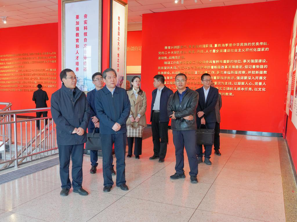 劉朋建一行重點考察了國家語言文字推廣基地(昌吉學(xué)院)、昌吉學(xué)院鑄牢中華民族共同體意識教育研學(xué)基地、圖書館朗讀設(shè)備、昌吉學(xué)院普通話水平測試站,參觀了習(xí)近平總書記在新疆的足跡展、中國共產(chǎn)黨精神譜系長廊、馬克思主義學(xué)院實訓(xùn)室、航空服務(wù)教育中心、航空器維修訓(xùn)練中心、準(zhǔn)東研究院等。