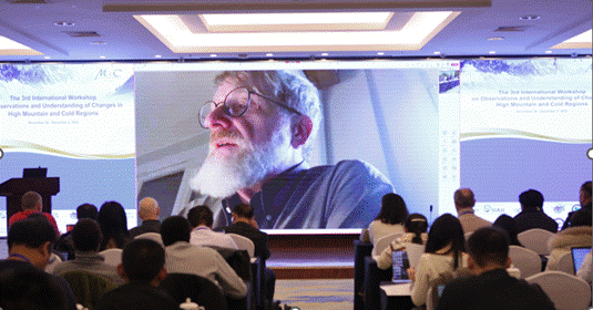 隨后,芬蘭科學和人文院院士馬庫·庫馬拉發(fā)表視頻致辭,他表示亞洲高山區(qū)和北極寒區(qū)關(guān)聯(lián)密切,此次會議為進一步梳理在該方面的科學進展提供了重要契機,他表示將在該領域持續(xù)加強同中國科學研究領域的合作;比利時皇家海外科學院院士菲利普·德馬耶爾線上為大會致辭,他指出在青藏高原、北極地區(qū),甚至在天山附近正在發(fā)生的變化,這不僅對“一帶一路”氣候變化敏感地區(qū)產(chǎn)生重要影響,而且還影響著世界經(jīng)濟及人類生活,因此建立一個密集而可靠的觀測網(wǎng)絡測量和了解全球氣候的空間和時間變化以及分析環(huán)境變化具有重要意義。