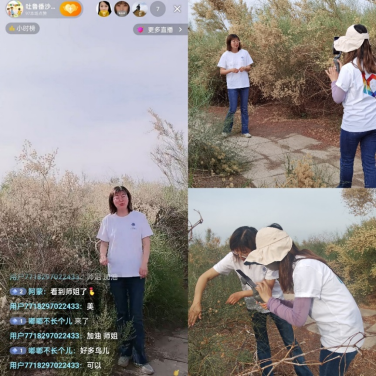 5月22日,時(shí)值世界生物多樣性日,康曉珊博士在吐魯番沙漠植物園開(kāi)展了以“沙棗,拐棗,沙拐棗,要好吃還是要你好看的”主題的科普直播,為廣大公眾普及荒漠植物知識(shí),認(rèn)識(shí)并了解荒漠植物的種類和在荒漠化治理中的重要作用。直播過(guò)程中,康博士重點(diǎn)介紹了植物園的“鎮(zhèn)園之寶”---沙拐棗屬植物,向公眾展示了不同種沙拐棗屬植物的果實(shí)特征和生存智慧,展現(xiàn)了多種荒漠植物的不凡風(fēng)采,公眾不僅欣賞了沙拐棗果熟時(shí)節(jié)果實(shí)累累的美景,還了解了名字如此相近的三種植物原來(lái)有著如此的不同特征,也為沙拐棗不能食用感到遺憾,同時(shí)也為荒漠植物經(jīng)受的重重逆境考驗(yàn)感受到敬佩,各地網(wǎng)友實(shí)時(shí)觀看直播并紛紛點(diǎn)贊。