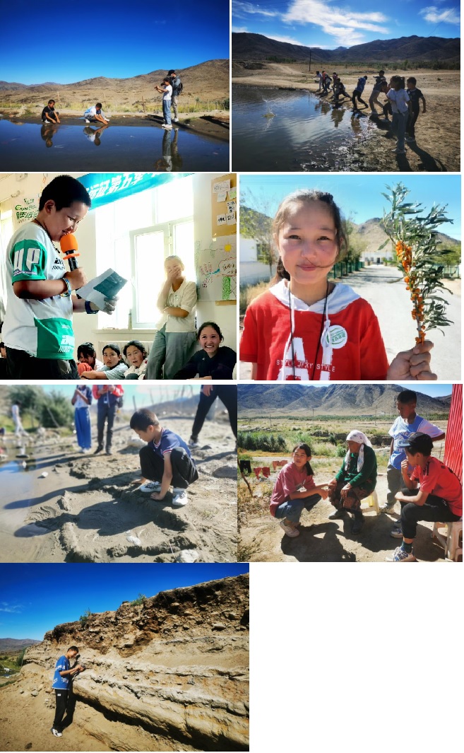 今年8月,在自治區(qū)科協(xié)“百會萬人下基層助力鄉(xiāng)村振興”項目的支持下,新疆野生動植物保護(hù)協(xié)會、新疆山水環(huán)境保護(hù)與可持續(xù)發(fā)展中心聯(lián)合查干郭勒鄉(xiāng)牧業(yè)寄宿學(xué)校、江布塔斯村委會,組織了村里30多位兒童,共同開展了一場用影像記錄家鄉(xiāng)生態(tài)環(huán)境的活動。在探索家鄉(xiāng),拍照記錄家鄉(xiāng)環(huán)境時,孩子們總是被村邊的一個水坑吸引,駐足在這里,每個人的回憶和想象也像水中的倒影一樣把時間拉長了。