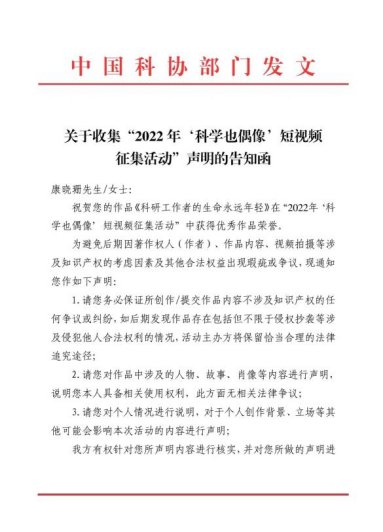 近日,中國科協辦公廳公布了2022年“科學也偶像”短視頻征集活動獲獎作品通知,新疆植物學會共有2部作品獲得優秀獎,分別是《科研工作者的生命永遠年輕》、《邊疆中藥人-李曉瑾團隊》。
