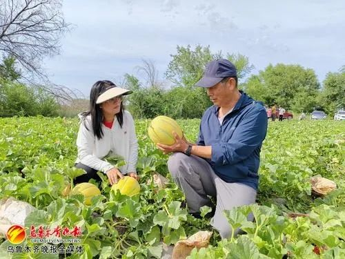 新疆園藝學(xué)會理事王惠林正在田間觀察選育的甜瓜新品系VH7。記者江斌偉攝。