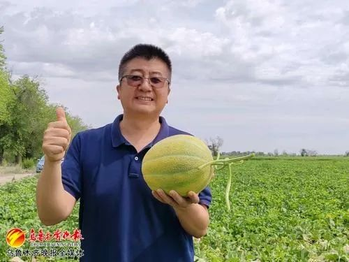 新疆農(nóng)業(yè)科學(xué)院哈密瓜研究中心副主任、國家西甜瓜產(chǎn)業(yè)技術(shù)體系特色甜瓜改良崗位科學(xué)家、自治區(qū)西甜瓜產(chǎn)業(yè)技術(shù)體系副首席張學(xué)軍研究員舉著此次選育出的甜瓜新品系VH7,向大家展示。記者江斌偉攝。
