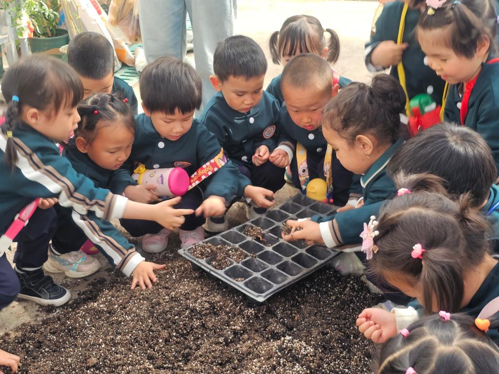 介紹完蔬菜之后,帶隊老師和小朋友們一起進(jìn)行了蔬菜種子的播種,讓小朋友學(xué)會如何種植蔬菜,體會勞動的快樂,也明白粒粒皆辛苦的道理。小朋友稚嫩的小手捧起一團(tuán)團(tuán)泥土和一粒粒種子,種下去的是希望和未來。