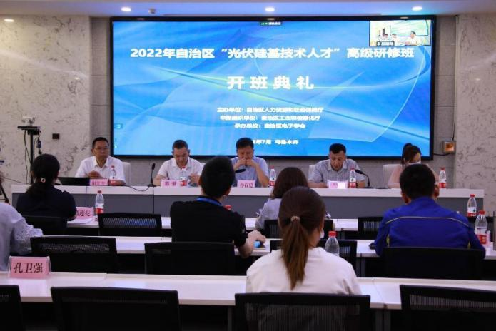 2022年自治區(qū)“光伏硅基技術(shù)人才”高級研修班為期5天,期間將圍繞“鈣鈦礦太陽能電池研究進展”“膨化物材料及單晶生長的研究”“工業(yè)硅/有機硅產(chǎn)業(yè)發(fā)展研究”等主題開展專項學習。
