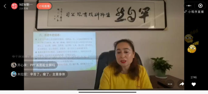 本期科普知識大講堂邀請了新疆維吾爾自治區(qū)第九屆青聯(lián)委員、新疆馬業(yè)協(xié)會副理事長、新疆飼料工業(yè)協(xié)會常務(wù)理事、新疆青年企業(yè)家協(xié)會會員、新疆罕自然生物科技有限公司創(chuàng)始人兼技術(shù)總監(jiān)阿依古力.阿不都克力木為大家在線講解了有關(guān)“肉牛育肥及飼養(yǎng)管理關(guān)鍵技術(shù)”的相關(guān)內(nèi)容,共有218人進(jìn)行了線上觀看。