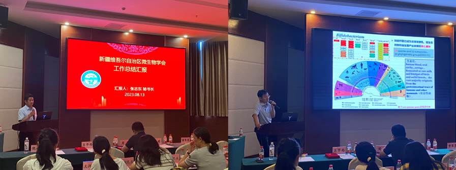 此次大會邀請到上海理工大學艾連中教授、中國海洋大學易華西教授、江南大學周鵬教授和田豐偉教授、內蒙古農業大學張文弈教授等分別進行了題為“益生菌生物合成技術研究進展”“產抗菌肽乳酸菌的篩選及其應用 ”“特種乳降糖功效及其作用機制初探”“益生乳酸菌對帕金森病的有益作用”“乳酸菌和發酵乳制品的研究開發”等主題報告。石河子大學倪永清教授和李寶坤教授、新疆農業科學院(新疆微生物學會)張志東研究員、烏魯木齊奶業協會蔡擴軍副教授、石河子大學博士研究生李元元和趙全昊等結合自身益生菌資源挖掘和利用方面進展進行匯報。自治區主要乳企天潤乳業、花園乳業、麥趣爾集團、西域春乳業、旺源生物科技、天天乳業、新農乳業等參加會議并進行企業展示及科研需求對接,并就加強新疆特色益生菌資源開發利用和提升我區乳品行業中的科研創新能力等議題與專家學者進行了熱烈交流。