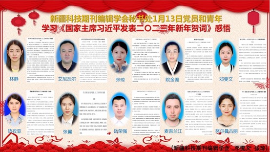 1月13日,新疆科技期刊編輯學會秘書處組織黨員和青年學習《國家主席習近平發表二〇二三年新年賀詞》。