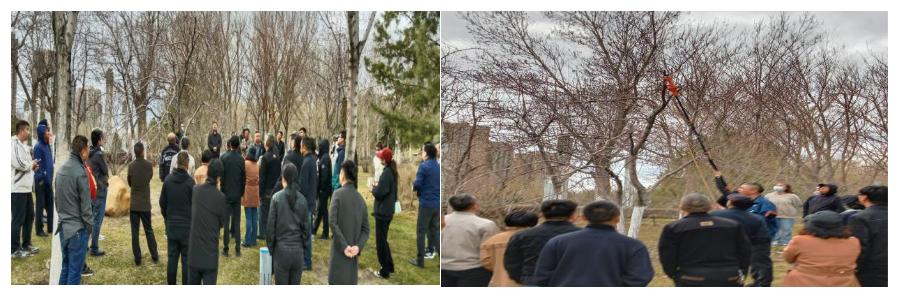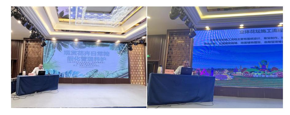 烏魯木齊市燕兒窩風(fēng)景區(qū)管理中心艾合買提江?買買提高級(jí)工程師結(jié)合日常工作管理經(jīng)驗(yàn),在觀賞花卉日常精細(xì)化養(yǎng)護(hù)、花壇的施工和種植技巧、水培植物等方面進(jìn)行了培訓(xùn)。