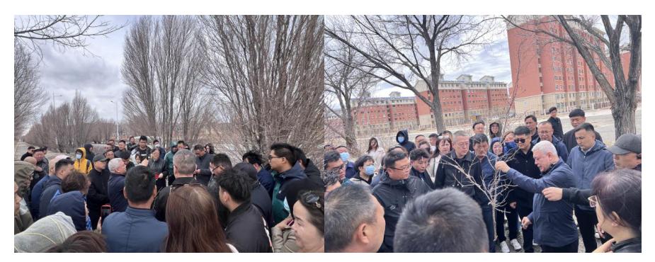 培訓(xùn)中,烏魯木齊市米東區(qū)園林管理局謝貽軍教授在園林樹木的栽培與管理及樹木的整形和修剪兩個(gè)方面進(jìn)行講解,采用具體工程案例的方式結(jié)合40余年的工作經(jīng)驗(yàn),在園林樹種的選擇、栽植季節(jié)、園林樹木的(土、肥、水)管理等方面對(duì)學(xué)員進(jìn)行了培訓(xùn)并和學(xué)員互動(dòng)交流。
