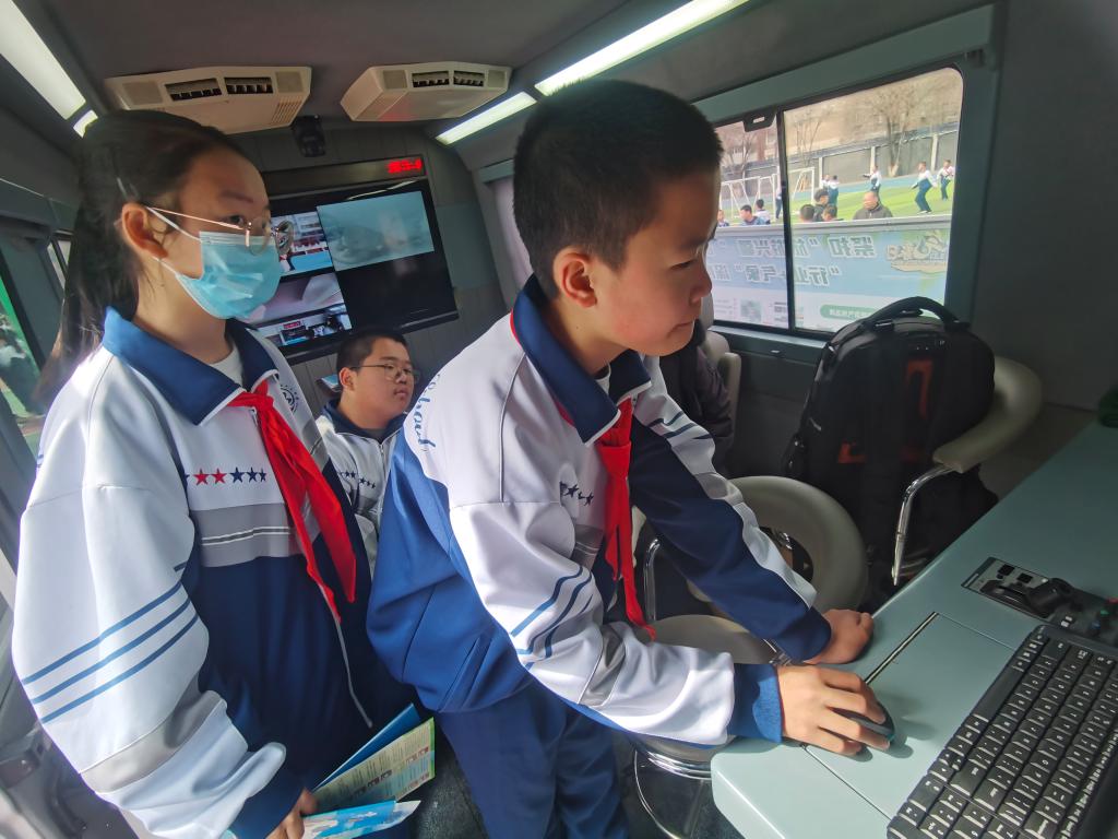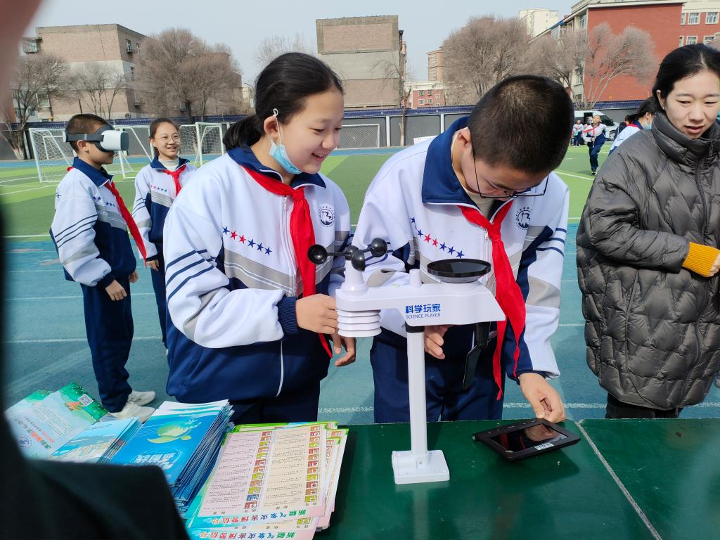 室外科普展覽活動精彩紛呈,同學(xué)們觀看了球幕影院里的科學(xué)電影、用VR設(shè)備體驗了人工影響天氣作業(yè)流程和模擬氣象災(zāi)害,聽志愿者講解了氣象知識,還近距離接觸了人影作業(yè)火箭車、氣象電視直播車、氣象衛(wèi)星模型、便攜式自動氣象站等設(shè)備展品。講解和體驗結(jié)合的方式,讓同學(xué)們了解氣象,讓氣象知識和防災(zāi)減災(zāi)知識深入人心。