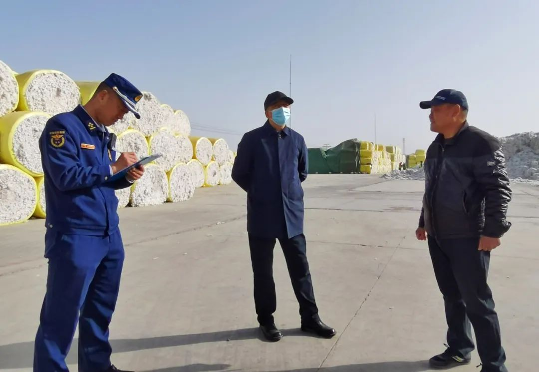 巴州支隊重點就棉花收購、加工企業消防安全主體責任是否落實到位;消防安全布局、防火間距、消防車通道是否符合標準;建筑消防設施、器材是否配備并保持完好有效,定期進行檢測、維保;建(構)筑物耐火等級是否符合國家技術標準;內部電線電纜管道防火封堵是否嚴密;重點防火部位臺賬、責任人標識、標牌是否齊全、滅火藥劑儲備是否充足及單位內部是否定期開展巡查檢查、組織員工進行消防安全培訓、制定滅火應急預案等方面開展了檢查指導。