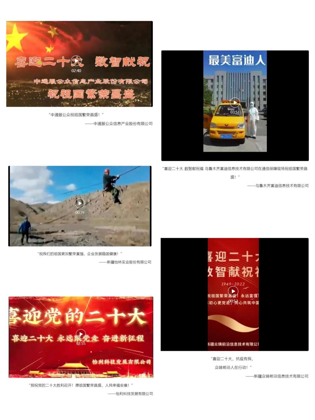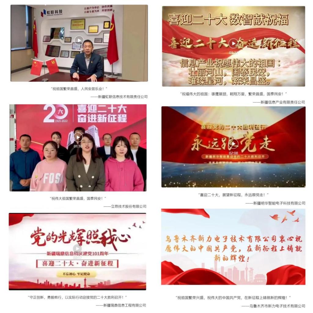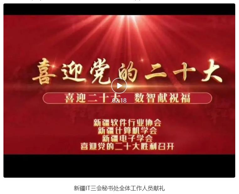 為喜迎黨的二十大勝利召開,新疆軟件行業協會、新疆計算機學會、新疆電子學會(以下簡稱“新疆IT三會”)開展“喜迎二十大 數智獻祝福”作品征集活動。會員企業通過拍攝照片、視頻的方式向偉大的黨送去真摯祝福,表達了IT企業們對黨和祖國的無限熱愛。