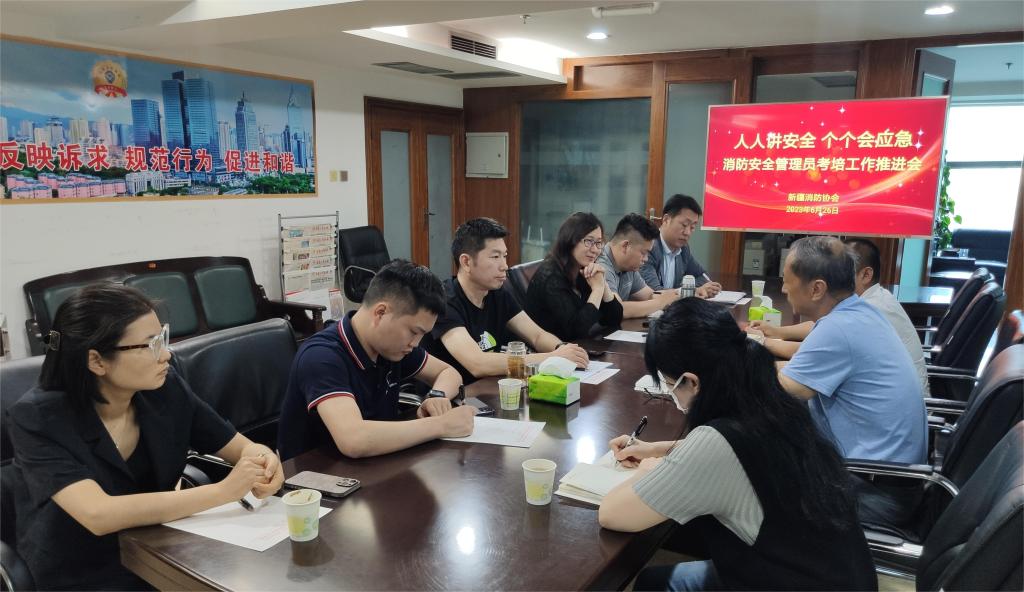 為推進(jìn)消防安全管理員培訓(xùn)和職業(yè)技能等級(jí)認(rèn)定工作,2023年6月26日,新疆消防協(xié)會(huì)組織召開消防安全管理員考培工作推進(jìn)會(huì)。會(huì)議由新疆消防協(xié)會(huì)黨支部書記、秘書長(zhǎng)閆懷宣主持,張照雄會(huì)長(zhǎng)出席會(huì)議并對(duì)消防安全管理員培訓(xùn)和職業(yè)技能等級(jí)認(rèn)定工作提出具體要求。梁嬋英、肖建國(guó)、劉強(qiáng)、楊一倫等培訓(xùn)合格的消防安全管理員職業(yè)技能等級(jí)認(rèn)定督導(dǎo)員考評(píng)員代表和消防設(shè)施操作員培訓(xùn)機(jī)構(gòu)代表慕剛、梁超等參加會(huì)議。