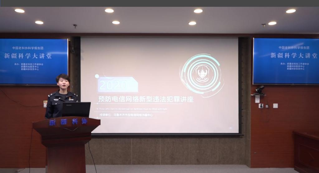 2022年9月22日,新疆老科協(xié)老年科技大學(xué)組織網(wǎng)課,課程題目為《預(yù)防電信網(wǎng)絡(luò)新型犯法犯罪》,授課老師為烏魯木齊市反電信網(wǎng)絡(luò)詐騙中心警官朱文臻。