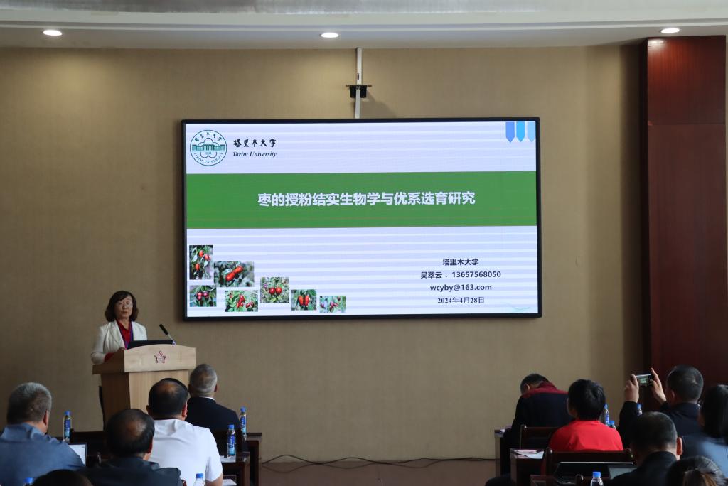 大會由開幕式、學術交流、基地參觀和優秀學術論文頒獎等四個部分組成。4月13日上午,塔里木大學黨委副書記于軍、新疆園藝學會理事長秦偉出席大會開幕式并致辭。中國工程院院士張紹齡、河北農業大學園藝學院教授劉孟軍、中國農業科學院都市農業研究所研究員楊其長、西南大學園藝園林學院研究員宋洪元、西北農林科技大學園藝學院教授管清美在主旨報告環節,分別進行了關于梨產業、棗多組學研究、沙漠設施農業、綠色農業發展和蘋果葉片蠟質調控基因的相關報告。與會人員通過與特邀專家面對面提問交流的方式,對我國園藝產業和科學研究有了進一步深入的認識。