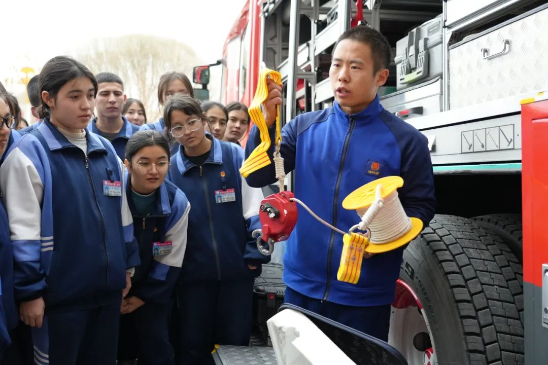 “發生火災時,千萬要保持冷靜,用濕毛巾捂住口鼻,身體盡量貼近地面,按照疏散指示標志所指方向有序撤離……"在和田縣消防救援大隊營區,宣傳員為師生演示了各類消防車輛器材裝備操作方法,并穿插講解了發生火災事故如何正確撥打火警電話、如何迅速逃生、火場逃生的動作要領及注意事項等消防知識,并隨機設置火情,組織師生在營區內開展疏散逃生演練,有效提高了廣大師生面對突發災害的防護和自救能力。